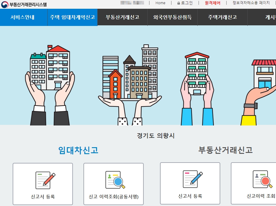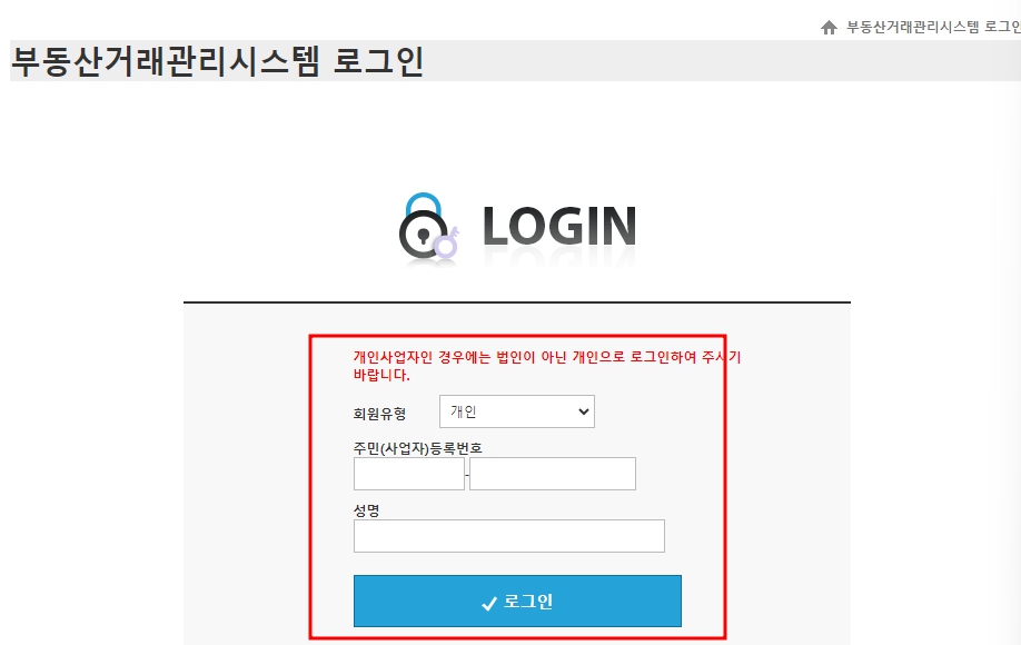 1. 위 링크의 부동산 거래 관리 시스템 접속 하기