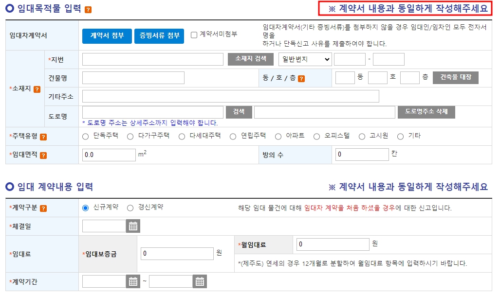 부동산 계약서를 보면서 하시면 모든 정보가 다 들어가 있으니 꼭 계약서를 옆에 두시고 하시고요.